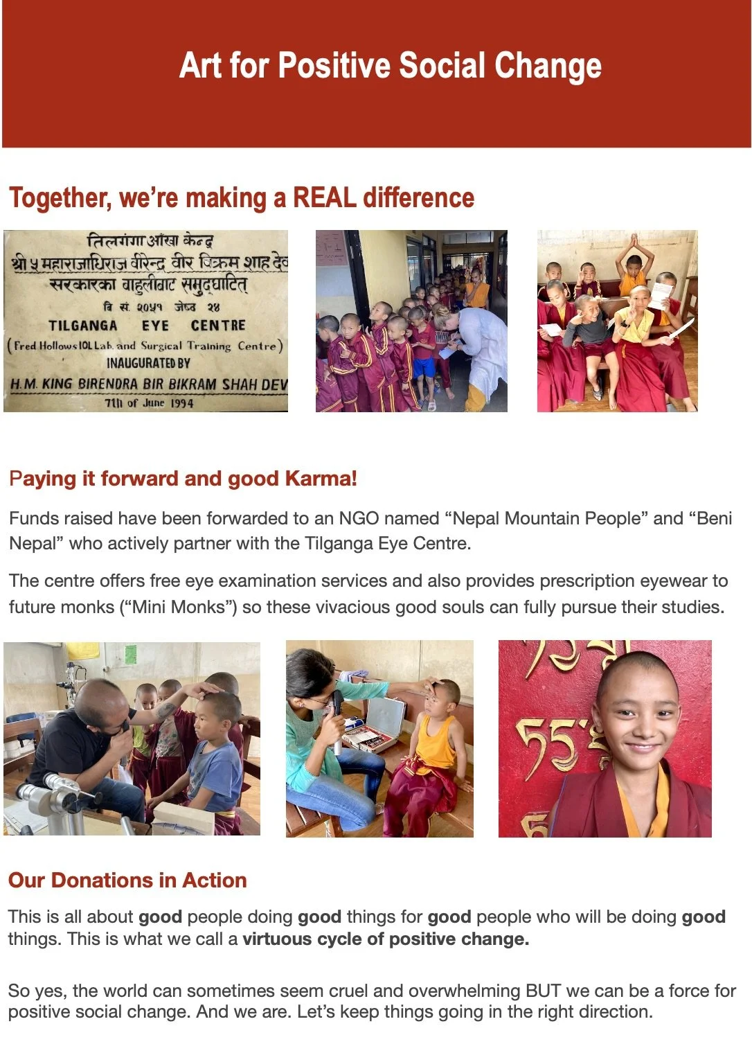 Proceeds will be forwarded to Beni Nepal, an NGO/charitable organization providing vital support to people & communities in need.
